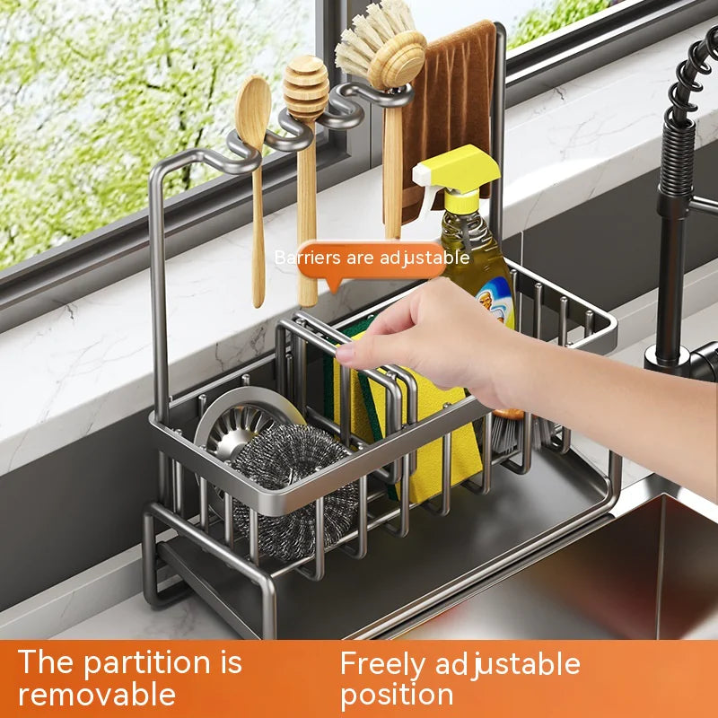 Multifunctional Kitchen Sink Organizer with Draining Rack
